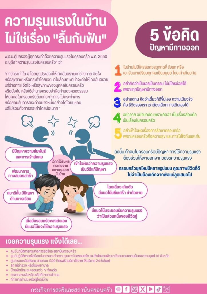เริ่มต้นด้วยหัวข้อ “ความรุนแรงในบ้าน ไม่ใช่เรื่องลิ้นกับฟัน” มาอ่านข้อคิดเพื่อเปลี่ยนความคิดในประเด็นนี้ได้จากรูปภาพด้านล่างได้เลยค่ะ